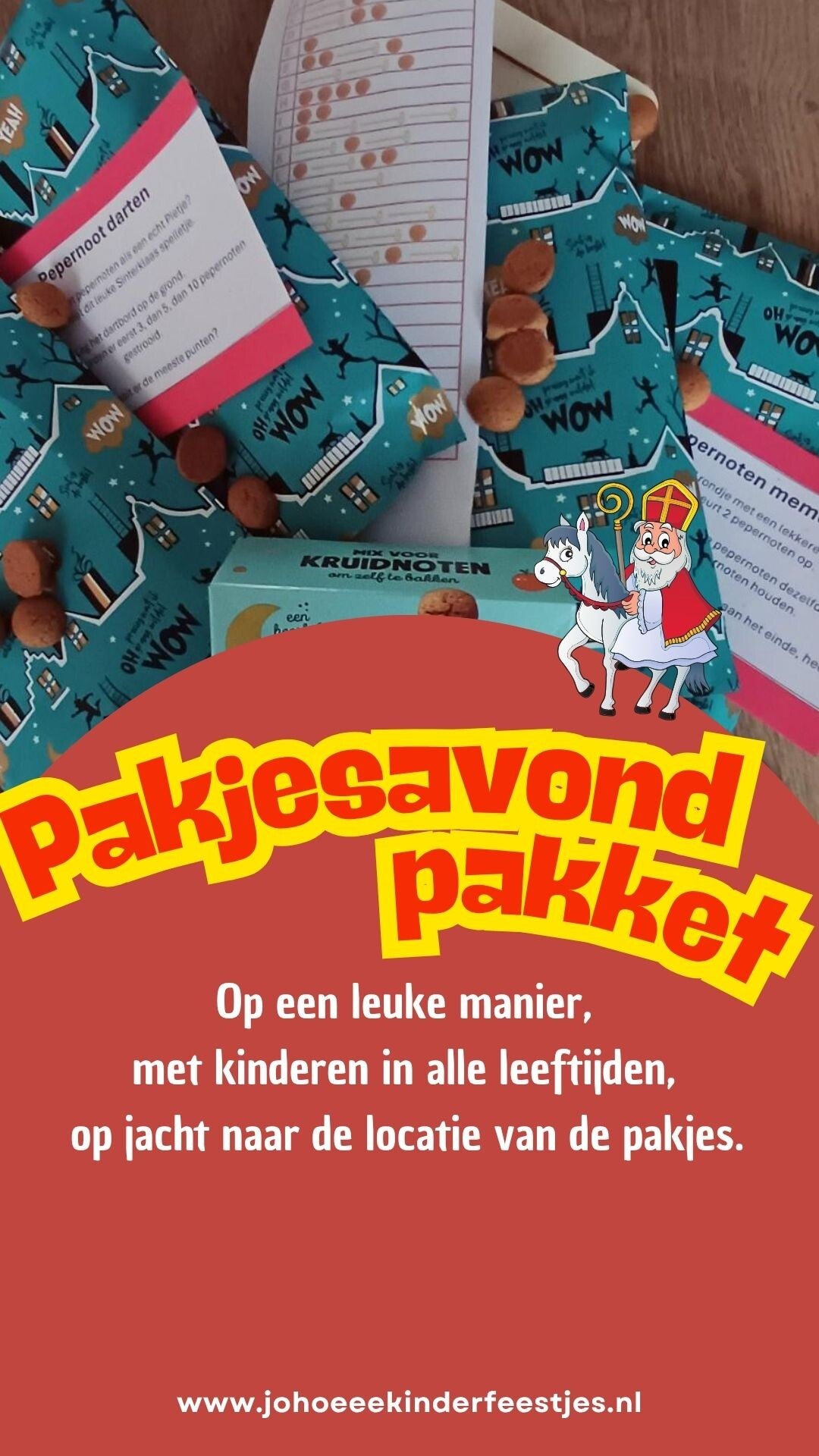 Pakket is op basis van max. 2 kinderen. Indien er meer kinderen zijn, voeg je makkelijk de aanvulling toe, via; Pakjesavond pakket aanvulling | www.JoHoeeekinderfeestjes.com